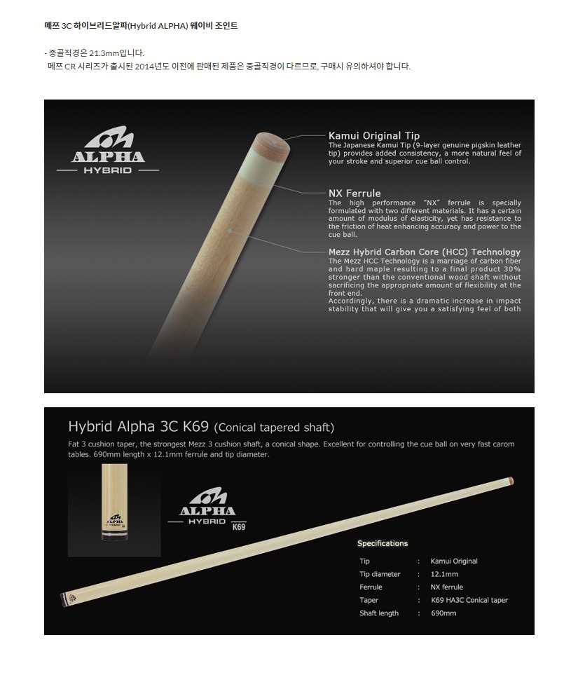 메쯔 캐롬 하이브리드알파(Hybrid ALPHA) 상대 / 당구큐상대