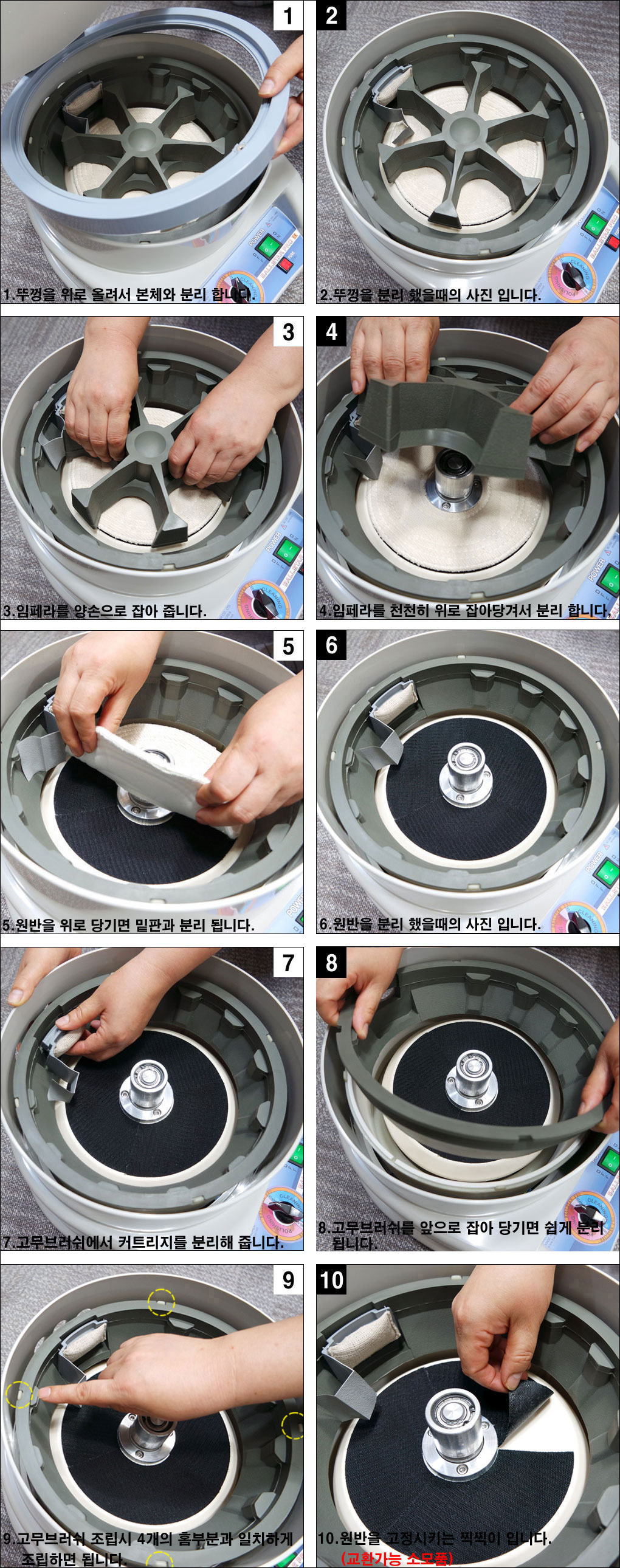 5.커트리지 및 공기계 밑부분에 있는 패드(볼스타천)가 지저분할 경우에는