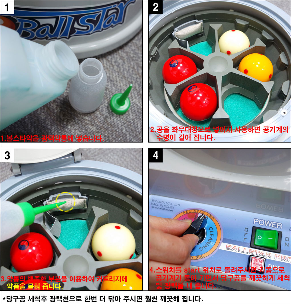 4.공기계가 정지하면 공을 꺼낸후 전용 융으로 공을 닦아 주시면 됩니다.